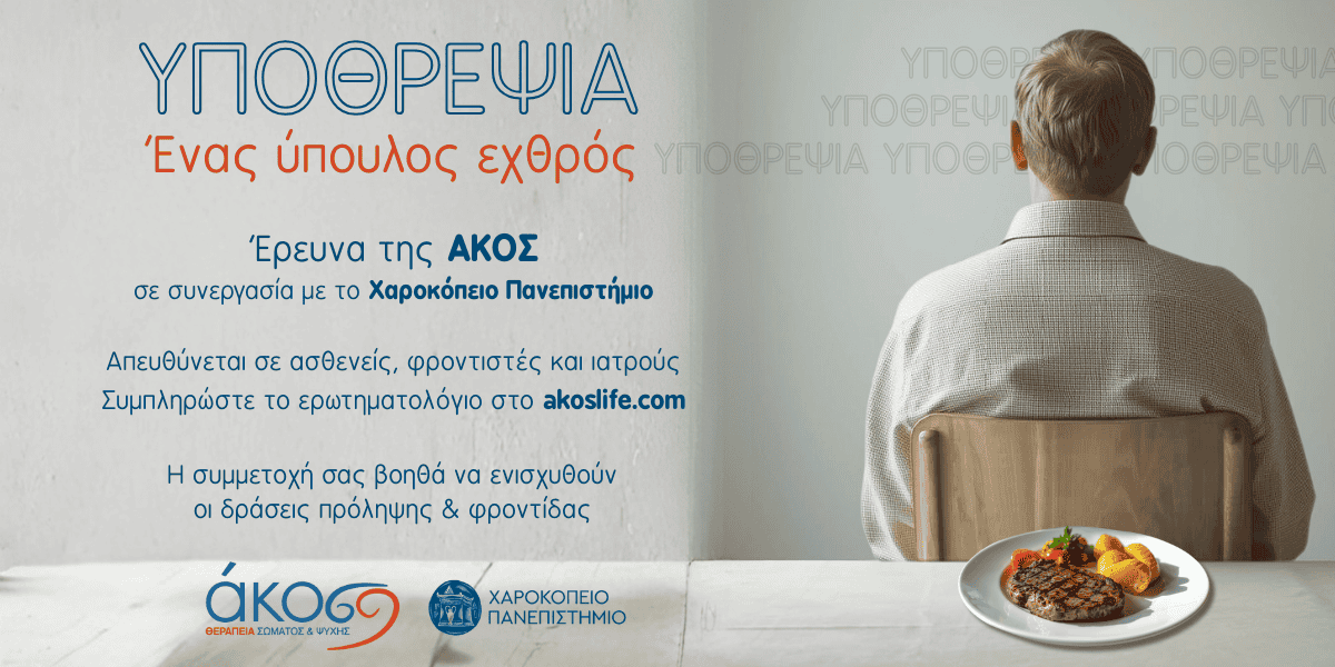 Έρευνα της ΑΚΟΣ για την υποθρεψία Απευθύνεται σε γιατρούς ασθενείς και τους φροντιστές τους Έρευνα της ΑΚΟΣ για την υποθρεψία η οποία απειλεί την τρίτη…